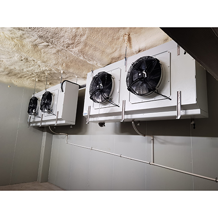 利用壓縮機排氣的高溫制冷劑來化霜,環(huán)保節(jié)能; 自動熱氟融霜,除霜速度快、效果好、能耗小; 自動熱氟融霜是靠電腦自動化控制的,當冷庫內需要融霜時